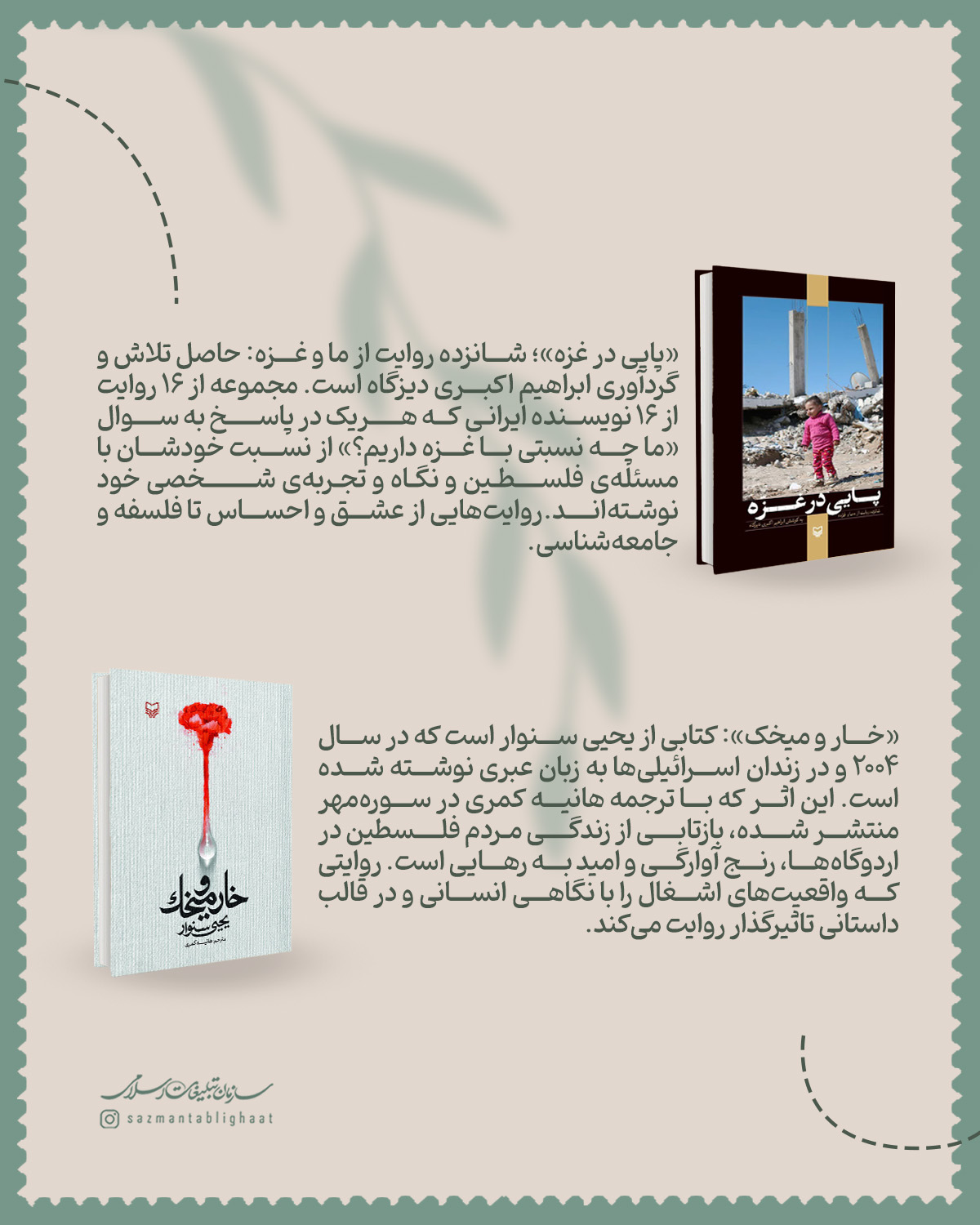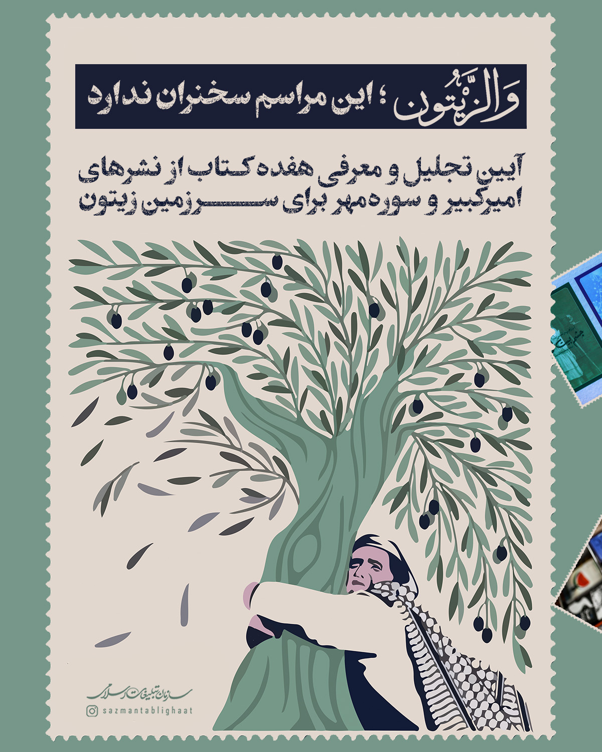 به گزارش روابط عمومی سازمان تبلیغات اسلامی، در آیین تجلیل و معرفی کتاب «والزیتون»، ۱۱ اثر از مجموعه‌ی «رنج تو جاریست» نشر امیرکبیر و ۶ کتاب از تازه‌های انتشارات سوره‌مهر در حوزه مقاومت، نه با سخنرانی بلکه با اجرای نمایش، اکران مستند، پخش پیام‌های تصویری خالقان اثر و بریده‌خوانی از آثار منتخب معرفی شدند؛ جایی که نویسندگان، مترجمان، فعالان فرهنگی و رسانه‌ای و نوجوانان هنرمند ایرانی، راویِ کتاب‌ها بودند.