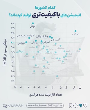 طبق آمارهای منتشر شده: آمریکا با ۶۵۰۰ پویانمایی، ژاپن با ۴۰۰۰، انگلیس با ۱۰۰۰، کانادا با ۹۵۰ و فرانسه با ۹۰۰ تولید در صدر جدول تولیدکنندگان این صنعت قرار دارند. اما اگر پای کیفیت به میان بیاید، نتیجه متفاوت است؛ میانگین امتیازهای ثبت‌شده در IMDb نشان می‌دهد که برخی از بهترین پویانمایی‌ها لزوماً محصول همین غول‌های تولید نیستند. در عوض، کشورهایی مانند یونان، برزیل، امارات، چک‌اسلواکی و حتی آلمان غربی در میان تولیدکنندگان باکیفیت‌ترین آثار دنیا قرار گرفته‌اند.
