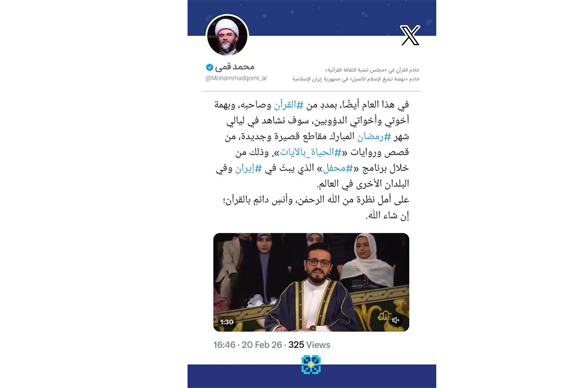 به گزارش روابط عمومی سازمان تبلیغات اسلامی، هم‌زمان با پخش فصل جدید برنامه قرآنی «محفل» در ماه مبارک رمضان، حجت‌الاسلام محمد قمی، رئیس سازمان تبلیغات اسلامی با انتشار بخشی از روایت عربی این برنامه توسط سید حسنین الحلو ـ یکی از میزبانان «محفل» ـ در صفحه شخصی خود در شبکه اجتماعی ایکس ویژه مخاطبان عرب‌زبان، از عوامل برنامه تقدیر کرد. وی نوشت؛