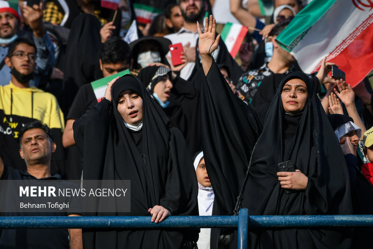 שירת המונים של ההמנון "סלאם פרמנדה" באצטדיון אזאדי בטהראן